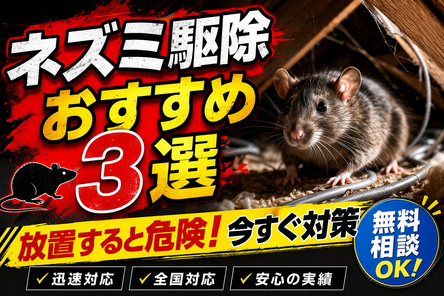 ネズミ駆除はどこがいい?おすすめ業者3選と料金・選び方を最新徹底解説!